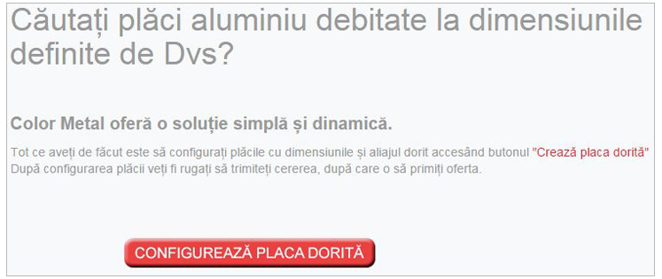 Vă mulțumim că folosiți această pagină special realizată pentru Dvs și are menirea de a vă prezenta pas cu pas procesul de configurare al unei plăci din aluminiu debitate la dimensiunile dorite. Tot ce trebuie să faceți este să urmați câțiva pași simpli.