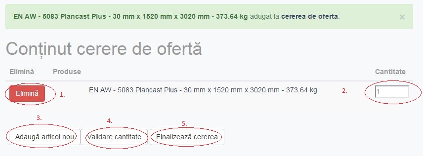 - Butonul "Finalizează cererea" -posibilitatea de a finaliza cererea de ofertă