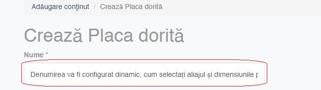 Câmpul nume se va genera automat după configurarea plăcii dorite.